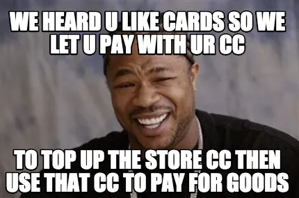 Funny we heard u like cards so we let u pay with ur cc to top up the store cc then use Meme Template