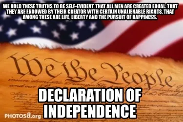 Make your own "We hold these truths to be self-evident, that all men are created equal, that th" meme with MemeCreator's free online meme generator. Add text, stickers, and drawings — then download or share. No watermark, no sign-up required.