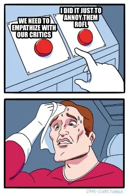 We need to empathize with our critics I did it Just to annoy them rofl Meme Template