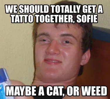 We should totally get a tatto together, Sofie Maybe a cat, or weed Meme Template