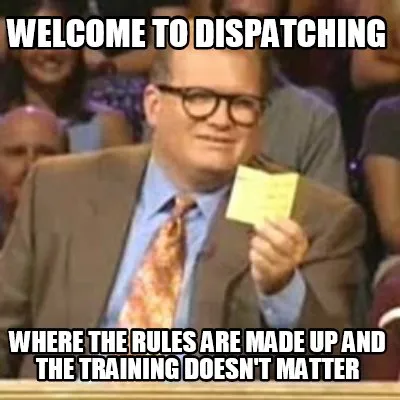 Create Welcome to dispatching Where the rules are made up and the training doesn't matt Meme