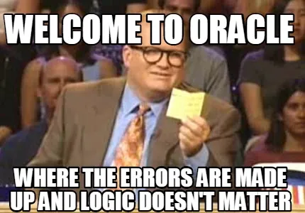 Funny Welcome to Oracle Where the errors are made up and logic doesn't matter Meme Template