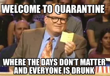 Welcome to quarantine Where the days don’t matter and everyone is drunk Meme Template