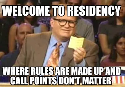 Funny Welcome to residency Where rules are made up and call points don't matter Meme Template
