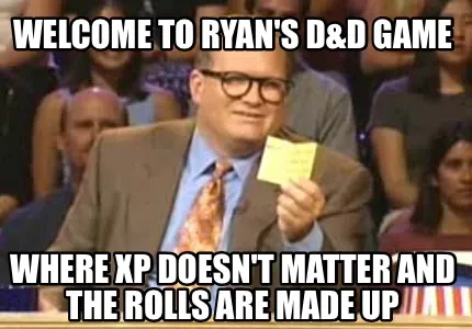 Create Funny Welcome to Ryan's D&D game Where Xp doesn't matter and the rolls are made up Meme