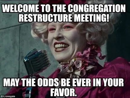 Funny Welcome to the congregation restructure meeting! May the odds be ever in your fa Meme Template