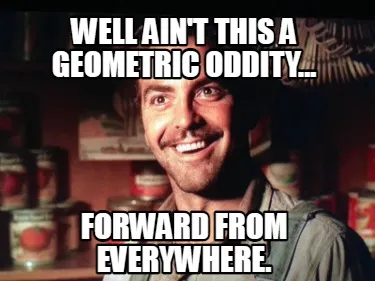 Make your own "Well ain't this a geometric oddity... forward from everywhere." meme with MemeCreator's free online meme generator. Add text, stickers, and drawings — then download or share. No watermark, no sign-up required.
