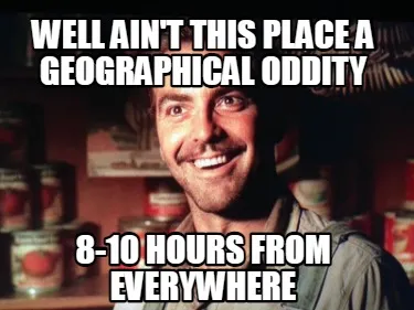 Well ain't this place a geographical oddity 8-10 hours from everywhere Meme Template