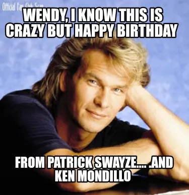 Create Funny Wendy, I know this is crazy but Happy Birthday From Patrick Swayze.... .and Ken Meme