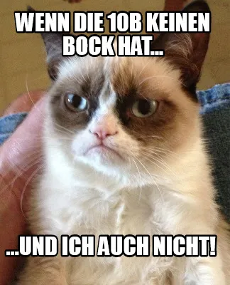 Make your own "Wenn die 10b keinen Bock hat... ...und ich auch nicht!" meme with MemeCreator's free online meme generator. Add text, stickers, and drawings — then download or share. No watermark, no sign-up required.