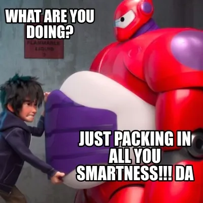 What are you doing? Just packing in all you smartness!!! da Meme Template