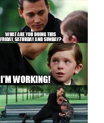 What are you doing this Friday, saturday and sunday? I'M WOrking! Meme Template