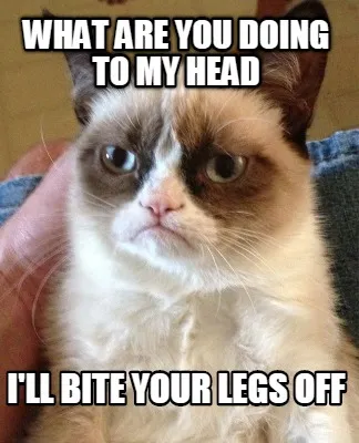 Create Funny what are you doing to my head i'll bite your legs off Meme
