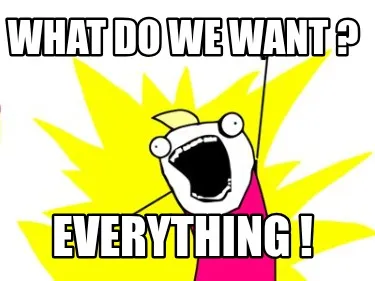 WHAT DO WE WANT ? EVERYTHING ! Meme Template