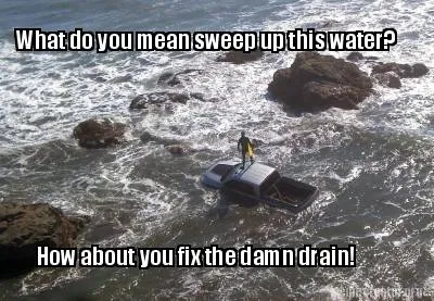 Create Funny What do you mean sweep up this water? How about you fix the damn drain! Meme