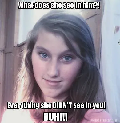 Create Funny What does she see in him?! Everything she DIDN'T see in you! DUH!!! Meme