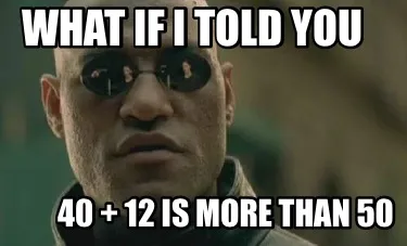 Create What if I told you 40 + 12 is more than 50 Meme