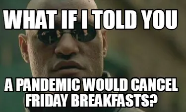 Create What if I told you a pandemic would cancel Friday Breakfasts? Meme