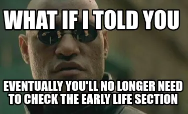 Funny What if I told you eventually you'll no longer need to check the early life sect Meme Template