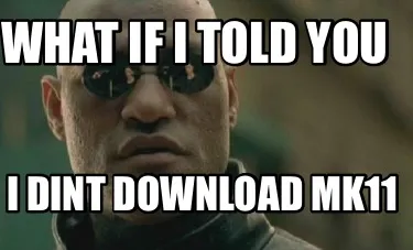 Make your own "What if I told you I dint download MK11" meme with MemeCreator's free online meme generator. Add text, stickers, and drawings — then download or share. No watermark, no sign-up required.