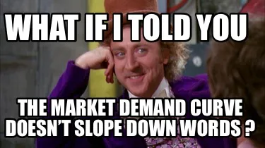 Make your own "What if I told you The market demand curve doesn’t slope down words ?" meme with MemeCreator's free online meme generator. Add text, stickers, and drawings — then download or share. No watermark, no sign-up required.