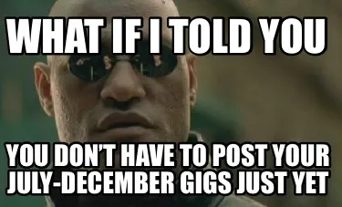Create Funny What if I told you You don’t have to post your July-December gigs just yet Meme
