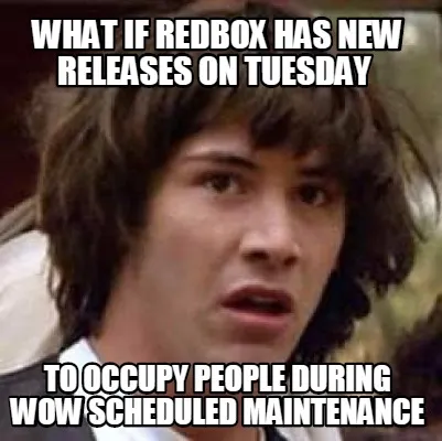 Create Funny What if redbox has new releases on tuesday to occupy people during wow schedule Meme