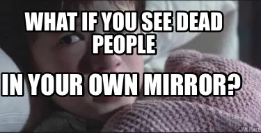 Make your own "Funny What if you see dead people In your own mirror?" meme with MemeCreator's free online meme generator. Add text, stickers, and drawings — then download or share. No watermark, no sign-up required.