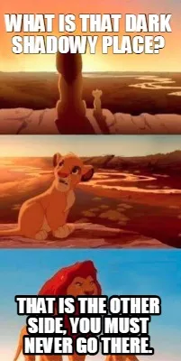 Create Funny What is that dark shadowy place? That is the other side, you must never go there Meme