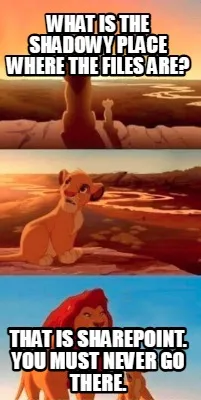 Funny What is the shadowy place where the files are? That is Sharepoint. You must neve Meme Template