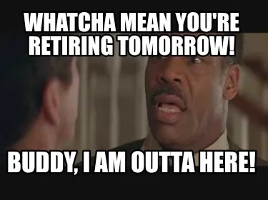 Funny Whatcha mean you're retiring tomorrow! Buddy, I am outta here! Meme Template