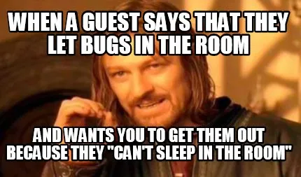 Funny when a guest says that they let bugs in the room and wants you to get them out b Meme Template