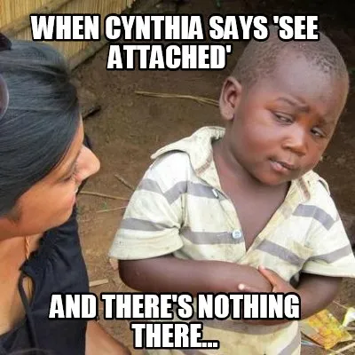 Create When Cynthia Says See Attached And Theres Nothing There Meme