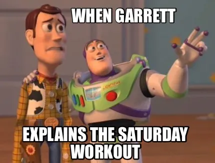 Funny When Garrett explains the Saturday workout Meme Template