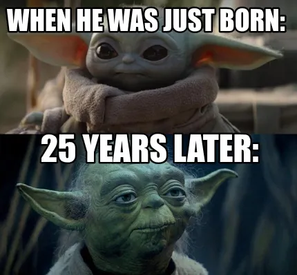 When he was just Born: 25 years later: Meme Template