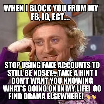 Create Funny When I block you from my fb, ig, ect.... Stop using fake accounts to still be n Meme