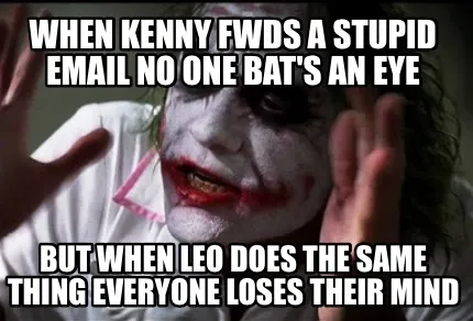 Create Funny When Kenny Fwds a stupid email no one bat's an eye But when Leo does the same th Meme