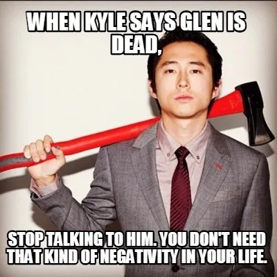 Create Funny When Kyle says Glen is dead, Stop talking to him. You don't need that kind of ne Meme
