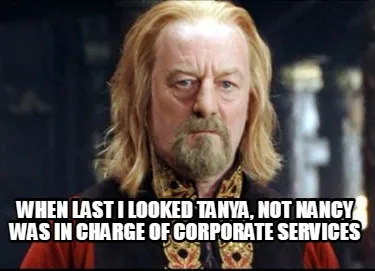 When last I looked tanya, not nancy was in charge of corporate services Meme Template