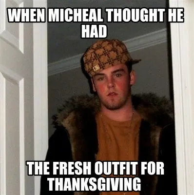Create Funny when micheal thought he had the fresh outfit for thanksgiving Meme