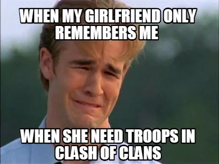 Create Funny WHEN MY GIRLFRIEND ONLY REMEMBERS ME WHEN SHE NEED TROOPS IN CLASH OF CLANS Meme