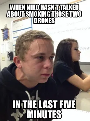 Create Funny When Niko hasn't talked about smoking those two drones in the last five minutes Meme