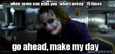 Create Funny when some one asks you "whats wrong" 15 times go ahead, make my day Meme