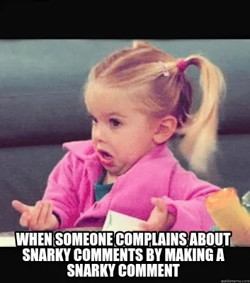 Create Funny When someone complains about snarky comments by making a snarky comment Meme