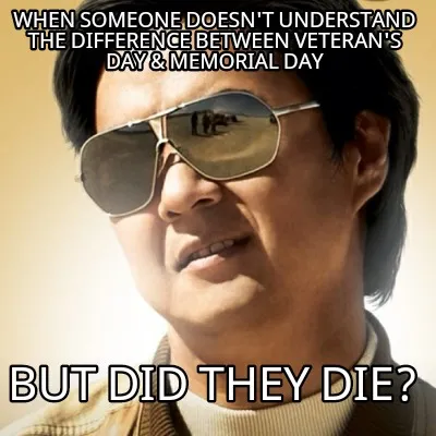Create Funny When someone doesn't understand the difference between Veteran's Day & Memorial Meme