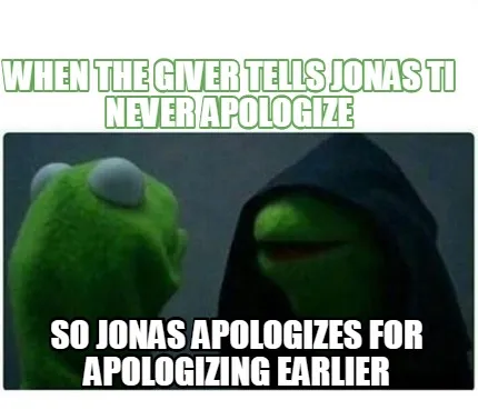 Create Funny When the giver tells Jonas ti never apologize so jonas apologizes for apologizin Meme
