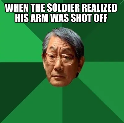 Create When the soldier realized his arm was shot off Meme