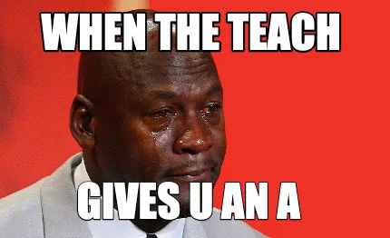 Make your own "Funny When the teach gives u an A" meme with MemeCreator's free online meme generator. Add text, stickers, and drawings — then download or share. No watermark, no sign-up required.