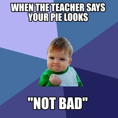Funny When the teacher says your pie looks "Not bad" Meme Template