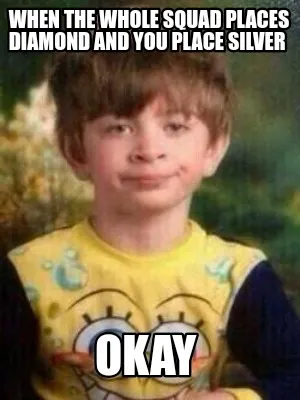 Create When the whole squad places diamond and you place silver Okay Meme